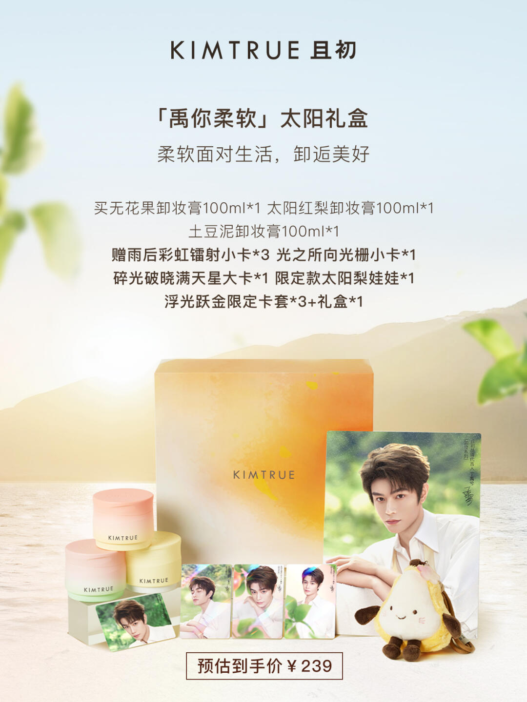 且初官宣丁禹兮(明星代言公司)为品牌(卸妆系列)代言人,系列包含「无花果卸妆膏」「太阳红梨卸妆膏」「土豆泥卸妆膏」等产品,购买制定产品可获得代言人定制精美周边,此次周边包含代言人小卡和限定太阳梨娃娃,希望一起「禹」你同行。