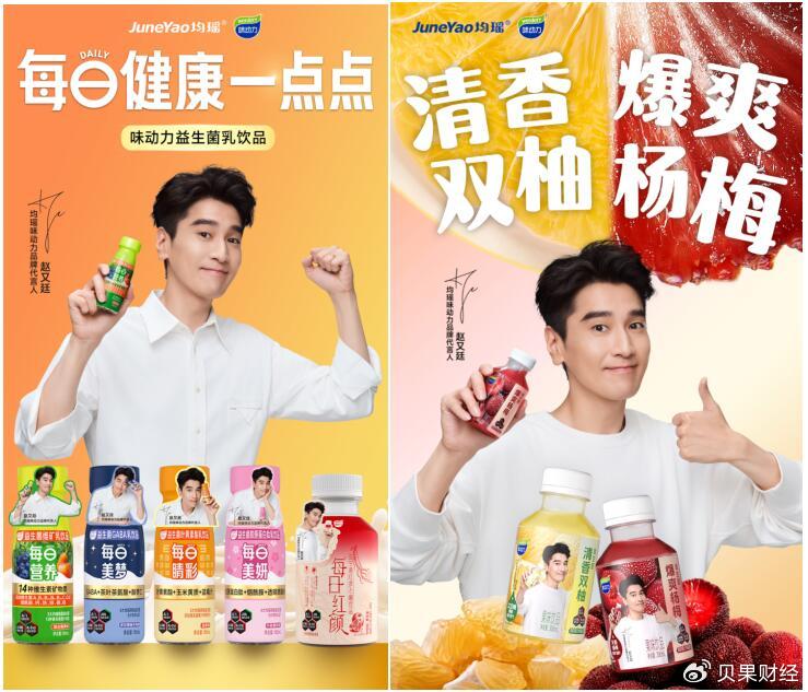 均瑶味动力今天正式官宣演员赵又廷(明星代言公司)为品牌代言人,并同步释出涵盖四大核心产品线的代言海报及花絮视频。