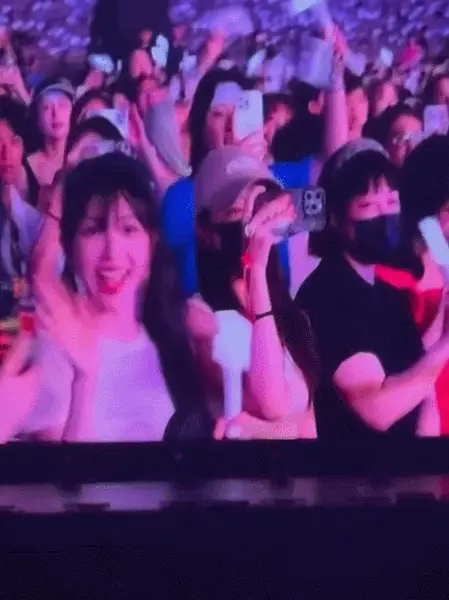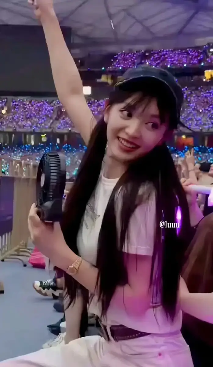 11日,田曦薇(明星经纪公司)现身林俊杰北京演唱会,她扎着双马尾在观众席中对着镜头挥手打招呼,十分甜美可爱!