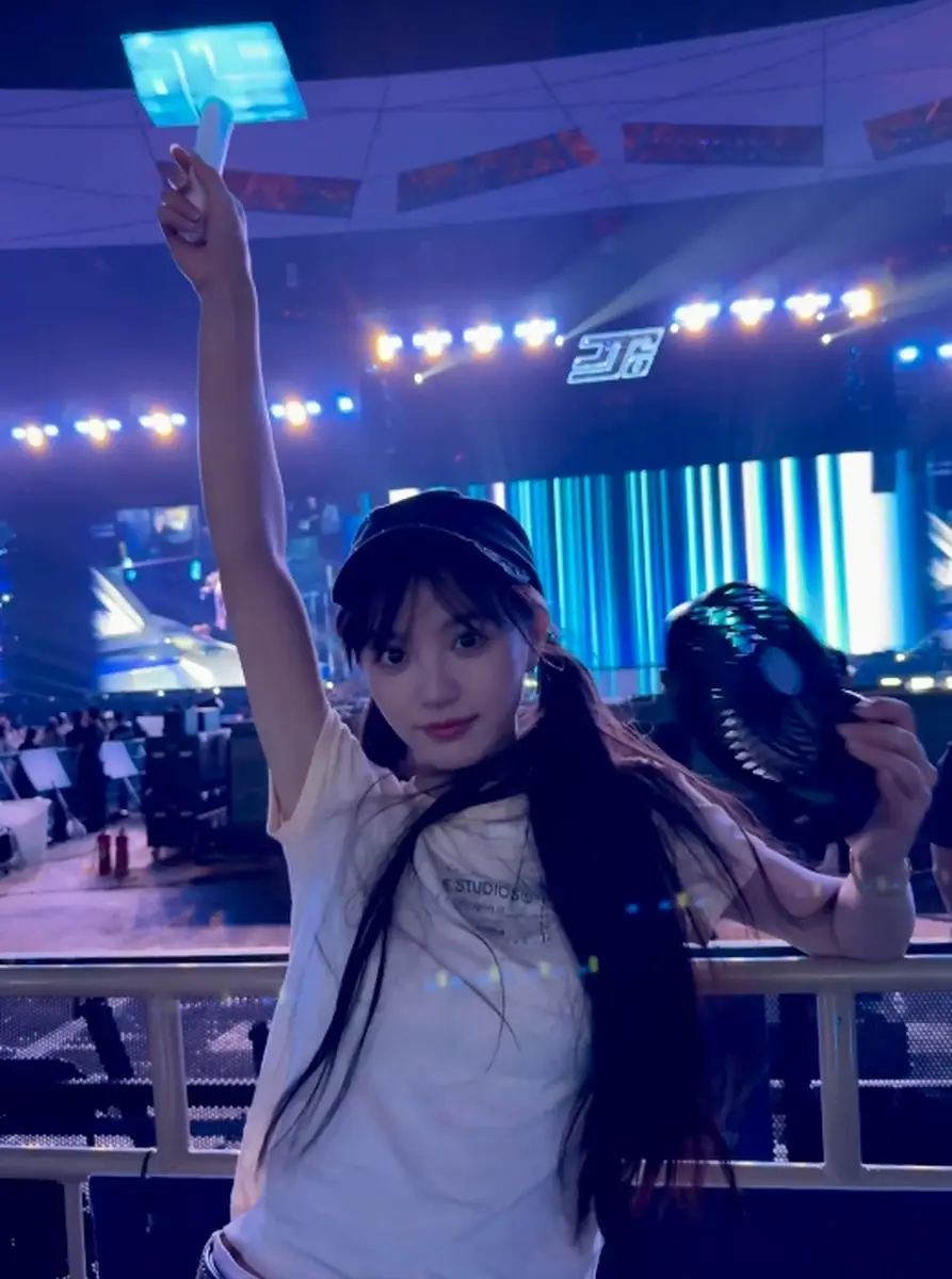 田曦薇在社交平台上晒出自己去看林俊杰演唱会的照片。