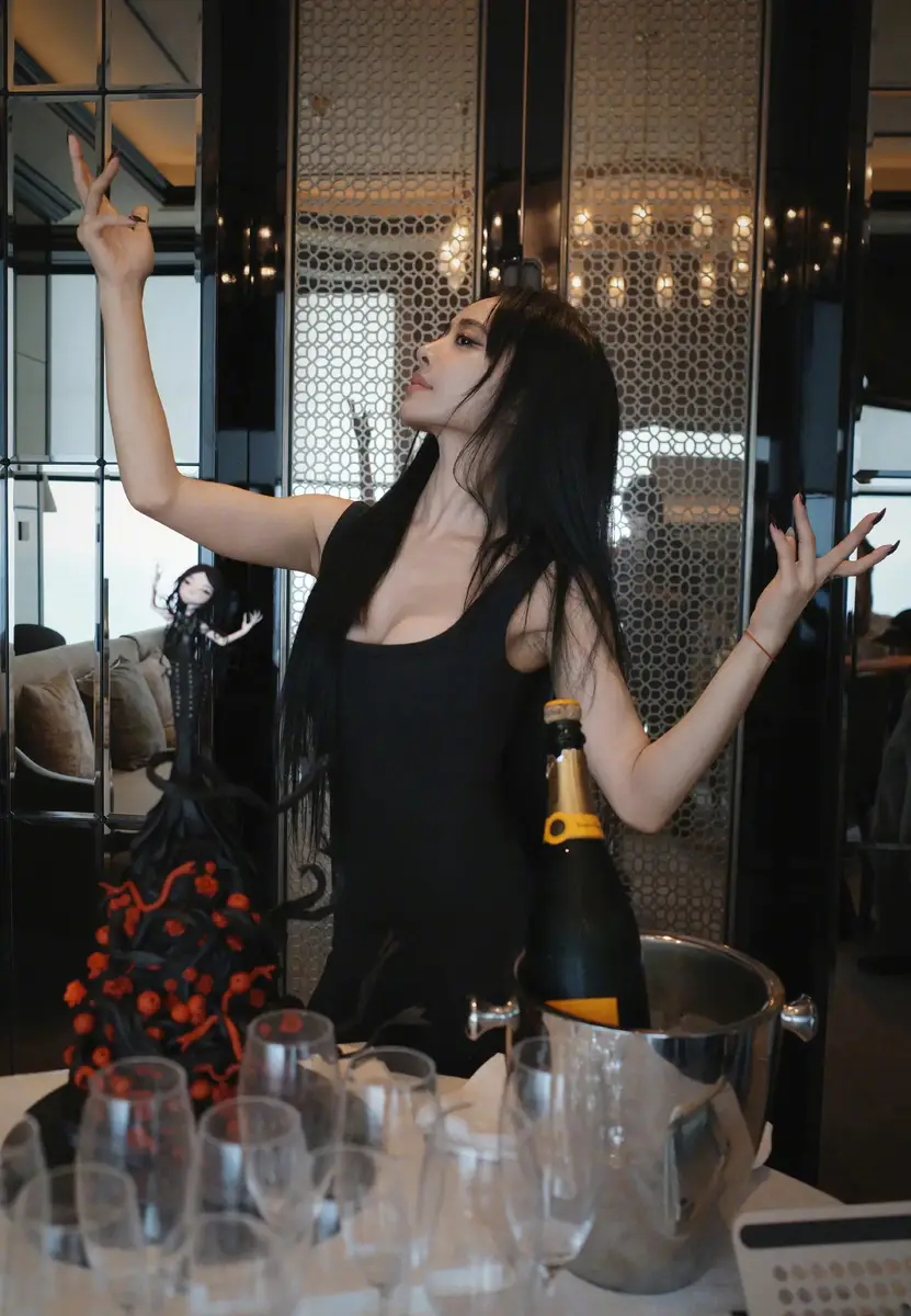 25日,蔡依林(明星经纪公司)在社交平台上晒出一组性感美照,并配文称:“happy pleasure day!哪一首歌最让你想开香槟喝上一杯?”