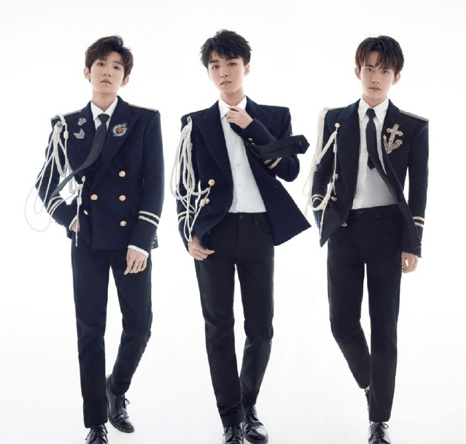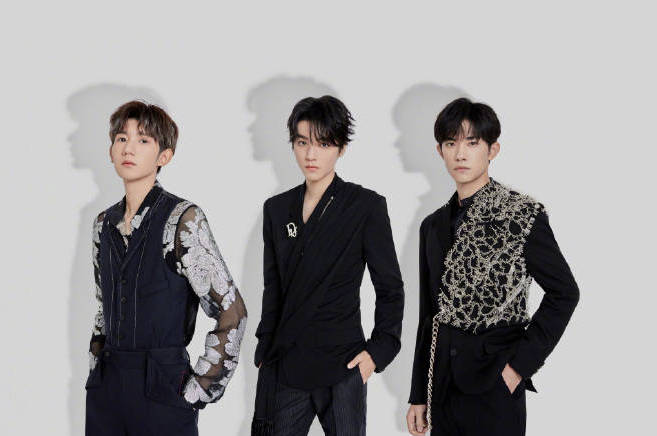 tfboys合照,三人黑色穿搭帅气十足。