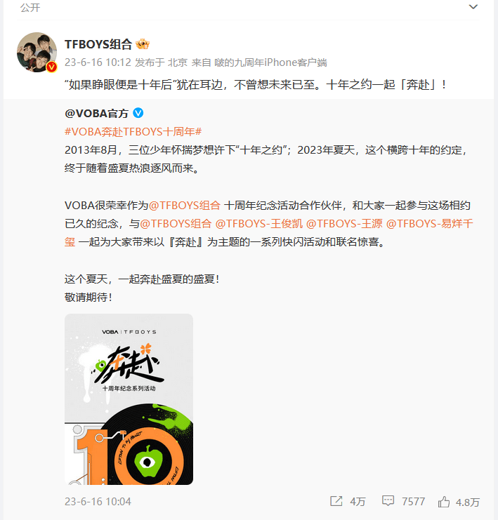 tfboys官方发布十年之约。