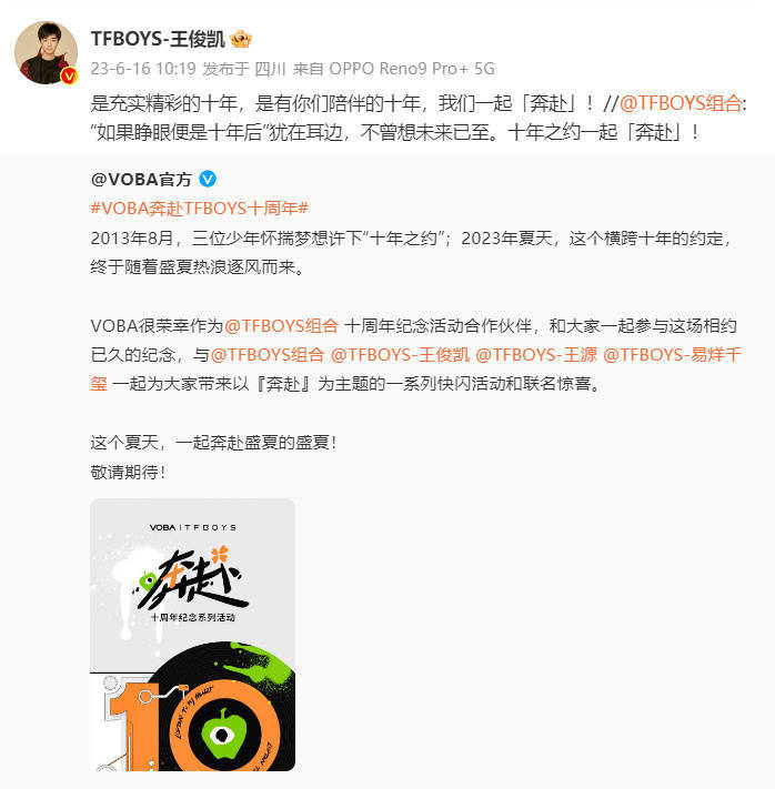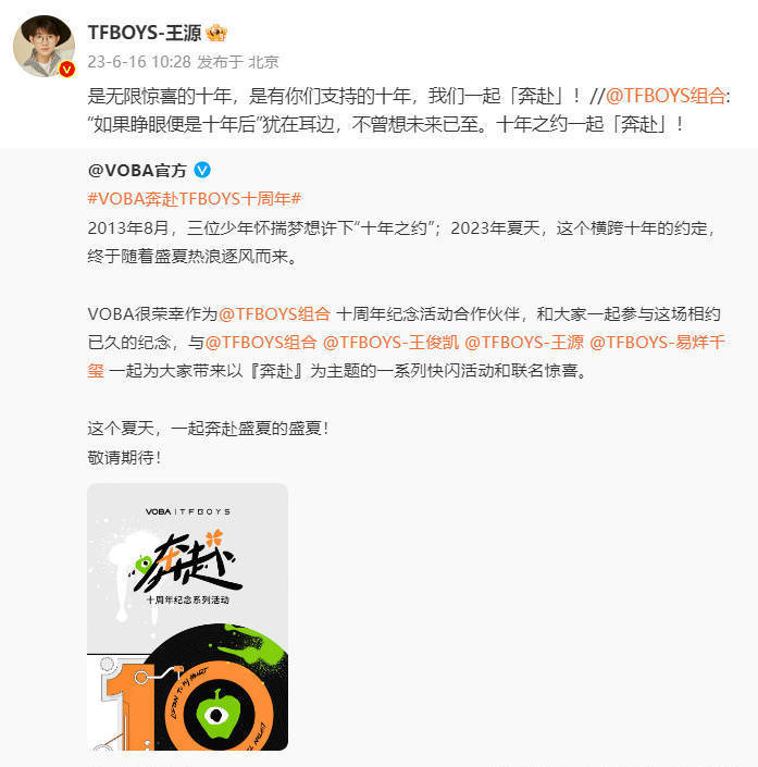 王源官宣tfboys十年之约。