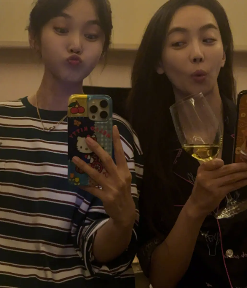 的合照,俩人对镜自拍,嘟嘴卖萌超可爱。