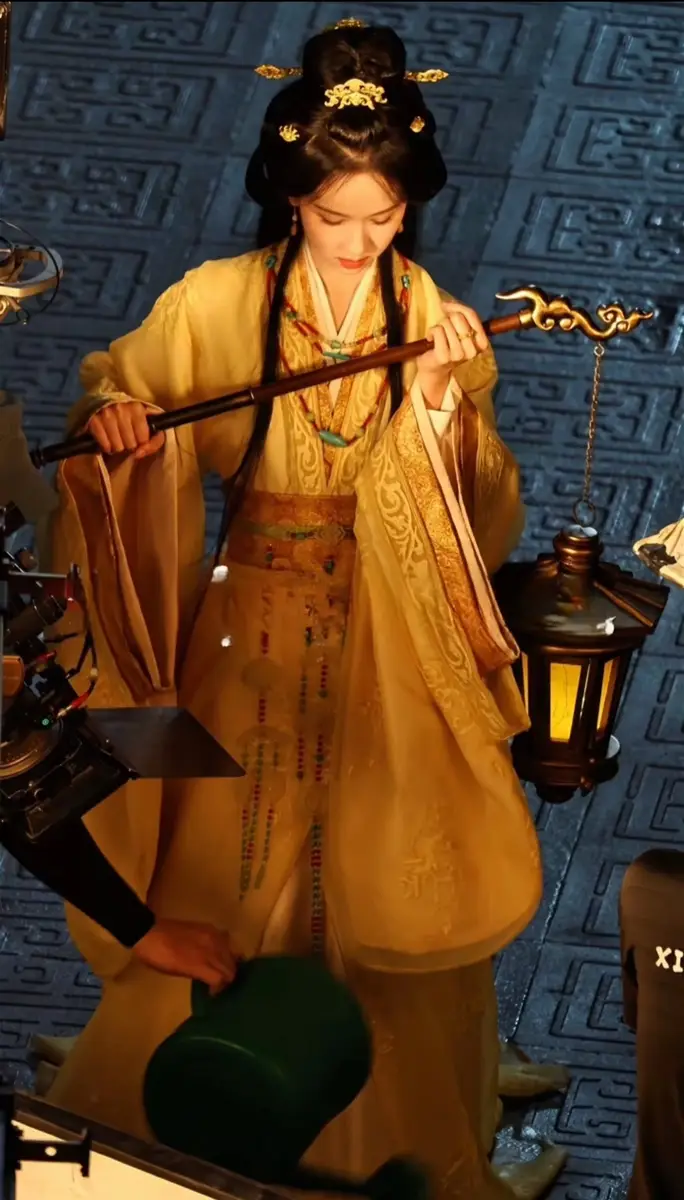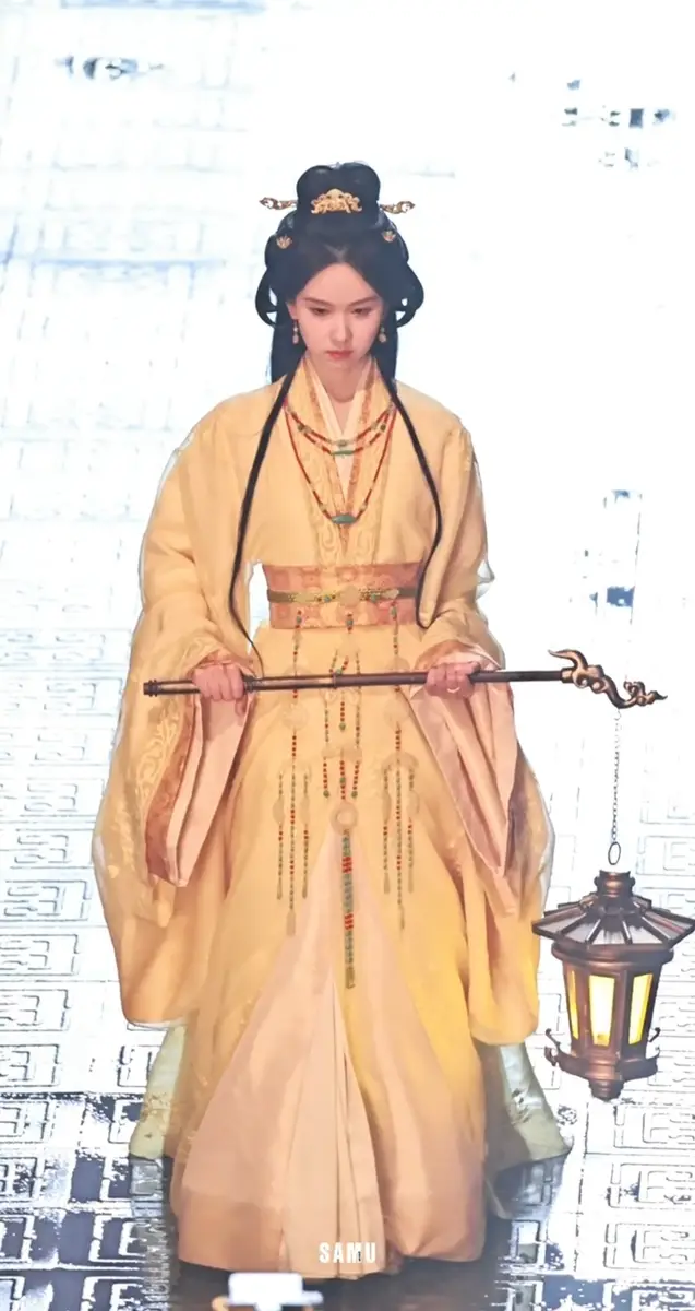 陈都灵黄衣提灯姿态优雅。